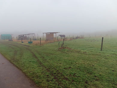 Nebel. Träge die Pferde in den Boxen. Bevor ich dann im Gehölz,
