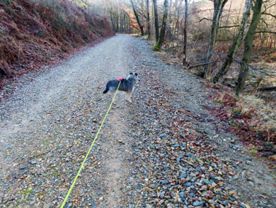 Er lief freudig an der Leine. Nach etwa zwei km waren wir auf einem asphaltierten Feldweg