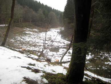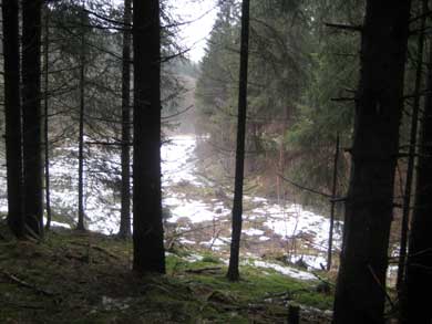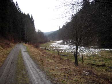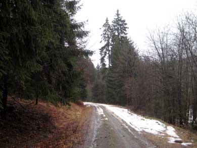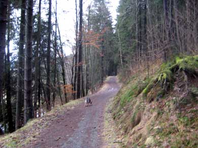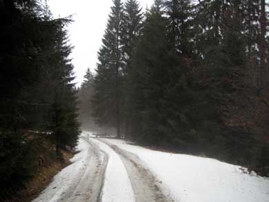 Eisenstraße, an der Siegquelle vorbei und im Nebel, durch den einsamen Wald bis zum Lahnhof.