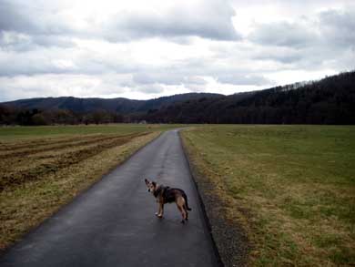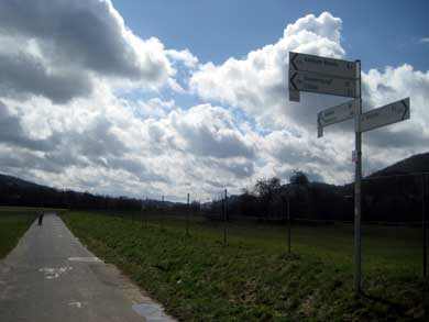 längs frisch asphaltiert, weg von der Straße gelegt, was dann weniger nervend ist, wegen der Autos.