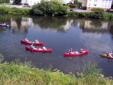 An der Lahn fuhren viele Radfahrer. Das Wetter lockte alle aus dem Haus.