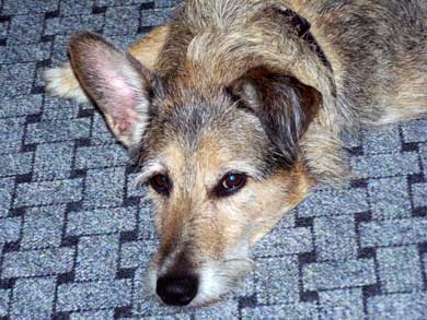Da hatte ich ihn schon zwei mal etwa 200 Meter getragen. So ein Hund. Er wiegt nur 17 Kilogramm.