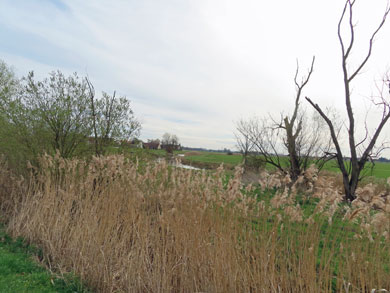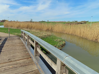 Unterwegs breitet sich eine flachere Landschaft aus. Viele Wasserarme, Sumpf und Schilf.