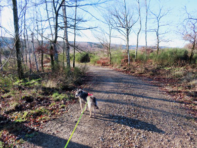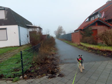 Er lief freudig an der Leine. Nach etwa zwei km waren wir auf einem asphaltierten Feldweg