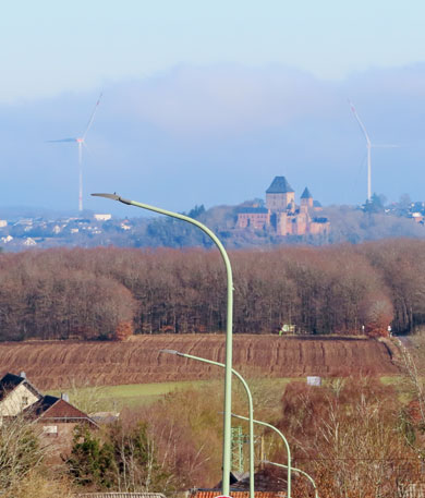 unter der L 246 nach Schmidt. Auf der Straße in Schmidt sah ich die Burg Nideggen.