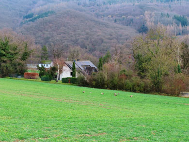 Meter die Straße entlang und wieder einmal steil nach oben. An Mausbach vorbei und